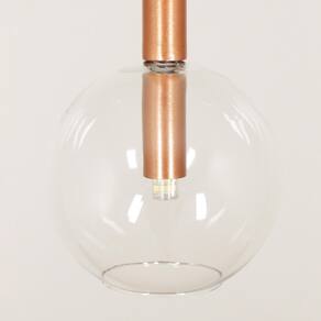 Tudo para iluminar seu ambiente com muito charme Perfeito para todos os ambientes Cor es : cobre Material: alumínio Globo de vidro transparente : 20 cm Base canopla : 12 x 1,5 cm Luminária: 1 soquete g9 Número de lâmpadas: 1 lâmpadas não inclusas Voltagem: 127v/220v Medida: 14 x 54 cm Conteúdo da embalagem: 1 luminária de teto Cabo de alimentação : 1,50m regulável