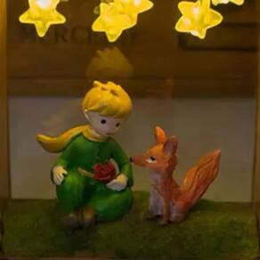 Transforme seu quarto em um conto de fadas mágico com esta encantadora moldura com a Luz Noturna do Pequeno Príncipe.Este lindo enfeite é feito à mão com amor, adicionando um toque de capricho à decoração da sua casa.Personagem: Pequeno Principe Tamanho: 10 x 15cm (6 polegadas)Material: PVCAltura aproximada:18cmIdade recomendada: +14 O pacote inclui uma moldura de madeira, pequenos enfeites, estrelas, algodão (utilizado para fazer nuvens), luzes de corda, argila, um bastão de cola quente e um pacote de pó de grama (o pó de grama requer látex branco, não acompanha, você mesmo deve prepará-lo).Existem duas opções de fonte de alimentação, uma bateria de botão, que precisa ser substituída quando ficar sem energia. Também há fonte de alimentação USB. USB também dividido em modelos sempre ligados e modelos de controle remoto.