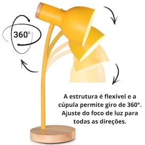 Luminária Mesa Abajur 45cm Articulada Flexível Silicone KJTD-688 + 1 Lâmpada 9 Watts LED Bivolt Cor: Amarelo Luminária de Mesa 45cm Flexível KJTD-688 Gimpo + 1 Lâmpada LED 9 Watts 6500K Bivolt Haste articulável revestida em silicone. Bivolt. Foco de luz com giro 360 graus. Procurando uma luminária de mesa que oferece elegância, flexibilidade, durabilidade e eficiência em termos de energia Não procure mais A Luminária Flexível KJTD-688 da Gimpo é a mais nova sensação para você ter em sua mesa de estudo, bancada, escritório, quarto, sala, em qualquer lugar Fabricada em materiais duráveis e eficientes em termos de energia, garante iluminação de qualidade por anos. A cúpula permite giro de 360 graus, o que possibilita ajuste do foco de luz para todas as direções. A estrutura é revestida em silicone de toque aveludado e macio , o que a torna mais resistente, protege de desgastes oriundos de atritos, riscos, rasgos, sujeiras e, ainda, dá um acabamento diferenciado, luxuoso e sofisticado. A estrutura é rígida e ao mesmo tempo flexível. A base possui peso, o que torna a luminária perfeita para articulações e projeções. Já acompanha uma lâmpada LED Bivolt. Pode também ser utilizada com lâmpadas comuns, compactas econômicas, incandescentes, fluorescentes, coloridas, LED's até até 60 Watts, soquete E27. Suporta lâmpadas 110v ou 220v bivolt . Caso usar lâmpada 110v, ligar em tomada 110v. Se utilizar lâmpadas 220v, conectar em tomada 220v. Caso a lâmpada seja bivolt, funcionará em ambas voltagens. Seja para trabalhar em um projeto, ler ou simplesmente iluminar um espaço escuro, é a escolha perfeita Super estilosa, decorativa e funcional. Experimente uma nova maneira de iluminar seu ambiente de trabalho ou estudo. Itens inclusos: 1 luminária KJTD-688 Gimpo. 1 lâmpada LED 9 Watts 6500K Bivolt. 1 Base de madeira. 1 Cúpula 360 graus. 1 Cabo de energia com 1,3m de comprimento a partir da base. 1 liga / desliga no cabo de energia a 25cm da base . 1 Plugue de tomada 2 pinos padrão brasileiro . Observação: Não acompanha lâmpada. Dados técnicos: Diâmetro da Cúpula: 12cm. Comprimento da Cúpula: 18cm. Diâmetro da Base: 15cm. Altura da base: 2cm. Altura máxima: 45cm. Comprimento da haste flexível: 36cm. Comprimento do cabo de energia: 130cm. Distância do soquete até a extremidade da cúpula: 12cm. Soquete: E-27. Material: Metal e madeira. Potência: lâmpadas até 60 Watts. Voltagem: Bivolt. Suporta lâmpadas 110v e 220v. Peso aproximado: 0,9kg. Medidas da caixa: 19 X 18 X 25cm. : 3 Meses. Faça seu pedido com conforto, segurança e rapidez Lembrando que mudanças não são permitidas após fechamento do pedido. Atente-se então, para comprar a luminária conforme modelo desejado.