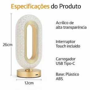 Luminária de Mesa Abajur Decorativo Efeito Cristal Dourado Touch 3 Tons Bateria Recarregável Modelo: Modelo 2 Luminária de Mesa Modelo Cristal Touch Recarregável com 3 Tons de Luz - Elegância e Funcionalidade para Qualquer Ambiente Transforme qualquer ambiente com um toque de sofisticação e charme com a Luminária de Mesa Modelo Cristal. Com design moderno inspirado em cristais facetados, essa luminária é perfeita para compor mesas de cabeceira, escritórios, salas ou até mesmo para dar um toque especial em eventos e decorações elegantes. Seu sistema de acionamento touch permite ligar, desligar e alternar entre 3 tons de iluminação com apenas um toque: luz branca, luz amarela e luz neutra - adaptando-se perfeitamente ao clima que você deseja criar. Além disso, é recarregável via USB, ou seja, dispensa o uso de fios, garantindo praticidade e mobilidade. Destaques do Produto