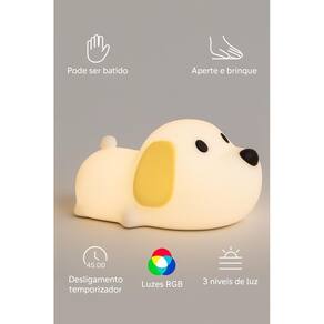 Luminária Mesa Cachorro Recarregável Silicone Touch Led Luminária Infantil de Silicone - Formato Cachorrinho Transforme o quarto das crianças em um ambiente aconchegante e divertido com esta charmosa luminária em formato de cachorrinho. Fabricada em silicone macio, ela é segura, resistente e perfeita para momentos de brincadeira. - pode ser batida sem quebrar - Aperte e brinque - textura agradável e maleável - Desligamento automático após 45 minutos - Luzes RGB para variar as cores - 3 níveis de intensidade de luz Ideal para ser Utilizado como luz noturna, proporcionando conforto e tranquilidade na hora de dormir. Funciona com luz LED de baixo consumo, garantindo economia e longa durabilidade. - Tamanho compacto - fácil de transportar e posicionar em qualquer espaço. - Perfeita para presentear crianças e amantes de decoração criativa O produto é novo Sim, todos os produtos são novos. Caso o produto não supra minha necessidade posso devolver ou trocar O produto tem Sim, todos os produtos têm . Se ainda houver alguma dúvida estamos a disposição para responder de segunda-feira a sexta-feira das 08:00 às 17:30. Marca: Não Informado