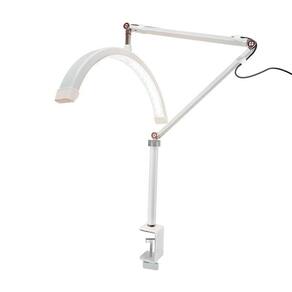 Braço articulado com Luminária LED meia-lua - estética - Tubo central: 23 cm - Articulado: 32 cm X 35 cm - Diâmetro da meia-lua: 41,5 cm - Abertura máxima da presilha: 58 mm - Material da luminária: ABS e Alumínio - Acompanha presilha universal para celular. - Liga/Desliga, aumento/redução de brilho. - Ajuste de temperatura: 3000-6000K - Lúmen: 1700 lm - Potência: 20 W - Número de LEDs: 180 - Voltagem: Bivolt 110-240V 50HZ/60HZ - Cor: branco - Proporciona um visual limpo e para sua estação de trabalho. Marca: Não Informado