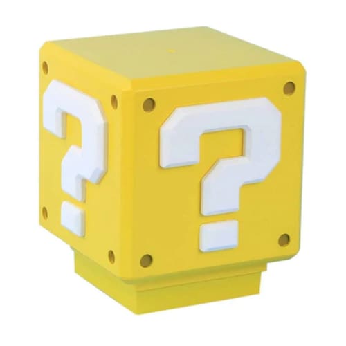 Oficialmente licenciada pela Nintendo, a luz parece um bloco de perguntas ativa/desativa a luz e faz o som da moeda do jogo quando você pressiona a parte de cima.