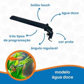 - essa luminária de extrema qualidade vai trazer elegância e sofisticação ao seu aquário. - possui sistema touch sensível ao toque . - são 18 leds no total, sendo 12 brancos e 06 rosas/ vermelhos de 0,5w cada, totalizando 9w. - ideal para plantados low tech