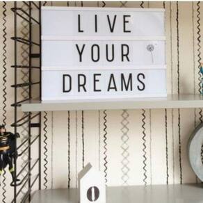 Coloque suas mensagens pessoais no centro das atenções com esta caixa de luz. São três painéis para inserir letras, ícones ou símbolos, permitindo que você coloque a frase que você quiser ou exiba seus ícones favoritos.