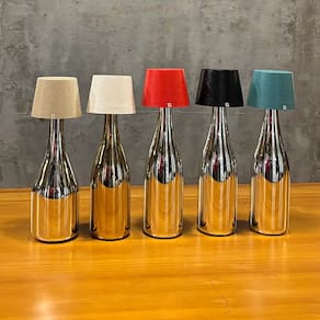 Graças ao seu design simples e moderno adapta-se perfeitamente a qualquer ambiente. Numa mesa de restaurante, numa sala de estar, onde pode relaxar lendo um livro e bebendo um bom copo de vinho, num escritório onde pode iluminar zonas escuras. O corpo é em alumínio pintado mate e graças ao seu anel de borracha adapta-se ao rebordo da garrafa.