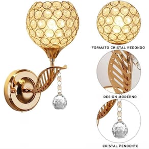 tipo: luminária de parede de cristal material: metal e cristal cor: dourada tipo de lâmpada: e27 lâmpada não inclusa frequência: 50/60hz tensão de entrada: ac 85-250v