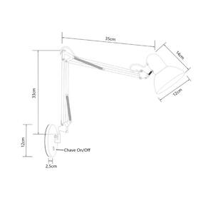 Feita em metal de alta qualidade, essa luminária possui medidas de largura de 12cm e profundidade ajustável máxima de 60cm, proporcionando flexibilidade na hora de direcionar a luz.