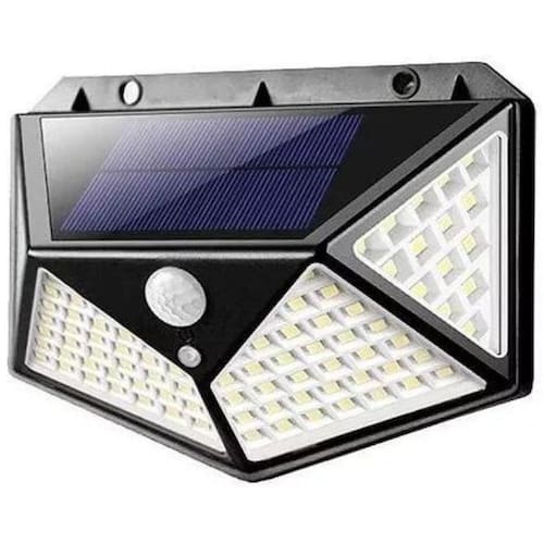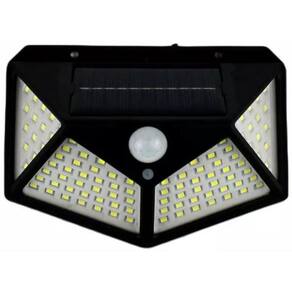 Luminária Parede Solar 100 leds Sensor de Presença Arandela Luminária Parede Solar 100 leds com Sensor de Presença Benefícios: - Ajuste frontal é mais fácil de operar; - Economia de energia e proteção ambiental; - Durabilidade e instalação simples só precisa de 2 parafusos inclusos ; - É fácil de usar e controle inteligente de detecção de luz; - Deixa sua casa mais bonita e inteligente Funcionamento: - Totalmente apagada no escuro e acende 100% do brilho quando detecta movimento e fica ligado por 18 segundos e depois apaga; - Sempre acesa com 40% do brilho e quando detecta movimento acende 100% do brilho por 18 segundos e depois volta nos 40% de energia; - Assim que escurece, a luminária acende 40% do brilho o tempo todo até amanhecer. E não funciona detector de movimento. Especificações: Potência de iluminação: 20 Watts em LED, equivalente a 150 Watts incandescente.Bateria: 3.Painel Solar: 5.5V 1wproteção em Nível: IP65Distância de detecção: 3-5mMedidas: 13,5cm x 9,6cm x 5,5cmSensor de movimento ângulo: 120ºCor dos LEDs: Branco-frioAcompanha: 1 Luminária Solar de 100 Leds 2 Parafusos 2 Buchas 1 Manual Marca: Quick Store Ean: 789653234429