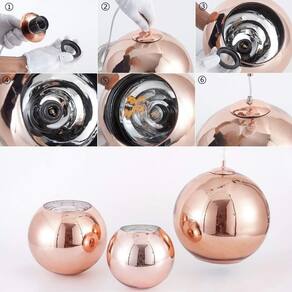Luminária pendente 35cm globo vidro bola dixon led teto espelhada rose gold gimpo mh601-35rg