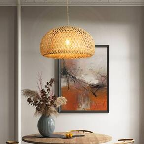 Luminária Pendente 38cm Lustre Teto Bambu Natural Gimpo KJDD-E-639-45CM Luminária Pendente 45cm Lustre Teto Bambu Gimpo KJDD-E-639-45CM. Fibra Natural de Bambu. Eco-friendly, sustentável Fiação 1,10m ajustável , cor preto. Base de teto de metal, cor preto. Adicione um toque de natureza e autenticidade ao seu ambiente com a luminária de Bambu KJDD-E-639-45CM da Gimpo. Este pendente feito à mão, com bambu de verdade, é sustentável, durável e combina desde o estilo rústico, ao moderno e minimalista. A estrutura do bambu é leve, e, ao mesmo tempo, super resistente, o que garante sua beleza ao longo dos anos. Causa um efeito refrativo impressionante e fornece uma luz radiante ao ambiente. Cria assim, uma atmosfera acolhedora, sofisticada, harmônica e muito elegante, conferindo aconchego e personalidade. O bambu é muito versátil e se adapta a diversos cômodos, indo bem quartos, home office, até cozinhas, salas de estar e de jantar, varandas, bangalôs, restaurantes, cafés, clínicas, salões, entre outros. Muito fácil de combinar com várias decorações. Pode ser utilizado individualmente ou em composições com outros pendentes. As luminárias de bambu da Gimpo são peças confeccionadas com tecnologias e ferramentas mais modernas, o que confere linhas mais limpas e acabamento polido, ou seja, um ar mais moderno e sofisticado, sem perder a rusticidade e naturalidade. Em comparação às produções mais arcaicas, trabalhadas de modo mais rústico, traziam imperfeições e desigualdades na superfícies das fibras de bambu. Por tal motivo, ao adaptar o modo de produção artesanal, possibilitou-se produzir com muito mais qualidade e personalização. Integrar elementos naturais como o bambu em ambientes internos não é somente uma escolha estética ou ambiental, mas também, oferece benefícios psicológicos. Estudos mostram que incorporar materiais naturais nas decorações pode reduzir o e aumentar a sensação de bem-estar. Uma opção sustentável, eco-friendly, responsável, de baixo impacto ambiental, que transforma e beneficia o planeta. Ao optar por produtos de bambu, apoiam-se práticas agrícolas que promovem a biodiversidade. Para maior comodidade e praticidade, acompanha kit parafuso para fixação: travessa, parafusos, buchas e arruelas. Ilumine seus momentos com estilo, requinte, modernidade e sofisticação Luminárias Gimpo. Elementos de beleza que transformam decorações. Especificações: 1 x Luminária 45cm Bambu Grande Artesanal Gimpo KJDD-E-639-45CM. Medidas: 45cm diâmetro x 22cm altura. Material: Bambu. Cor da luminária: natural. Base canopla : 10cm diâmetro cm x 2cm profundidade. Cor da base: preto. Fiação: 110cm regulável . Cor do cabo elétrico: preto. Soquete: E27. Suporta até 1 lâmpada 60 Watts não inclusa . Compatível com lâmpadas incandescentes, LED, filamento e CFL. Acompanha kit parafusos, buchas, arruelas e travessa. Voltagem: 110v / 220v Bivolt a depender da lâmpada. Medidas da caixa: 46 x 46 x 25. Peso: 1,4kg. Modelo: KJDD-E-639-45CM. Marca: Gimpo. EAN: 7898680303015. Sempre verifique a cor do produto ANTES de concluir a compra. Não fazemos alterações posteriores em pedidos. Imagens do anúncio são ilustrativas.