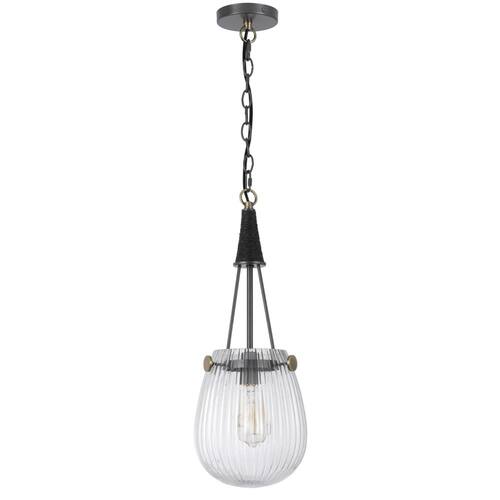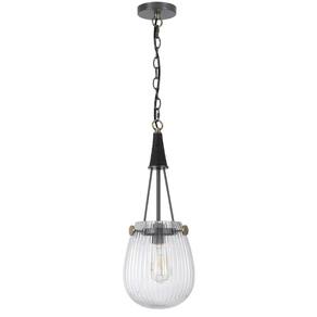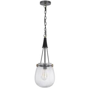 — uma luminária pendente suspensa. Construção durável em metal e vidro em cinza ferro e latão antigo.