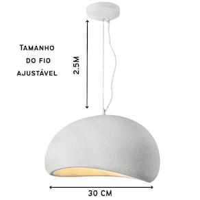 Cor: branco concreto Largura: 30cm Materiais: metal e resina Tipo de encaixe da lâmpada: e27 não inclusa Dimensões: 40x30cm Peso: 2,4kg Comprimento do cabo: 2.5metro Marca: Não Informado Ean: 7898962846179