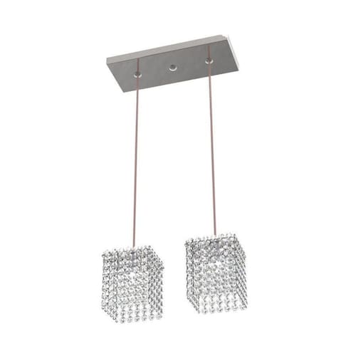 Material: Inox Espelhado Base 30 x 12cm Medidas: Cristal Quadrado 11x 11cm Cabo Regulável na Instalação 1,5m Cristal : Castanha 14mm Transparente Lâmpadas: 2 Lâmpadas Modelo G9 Obs. Lâmpadas não inclusa no produto Compatível com Lâmpadas de Led G9 Voltagem: Bivolt Peso: 1,5 Kg : 90 dias contra defeito de fabricação Marca: Não Informado