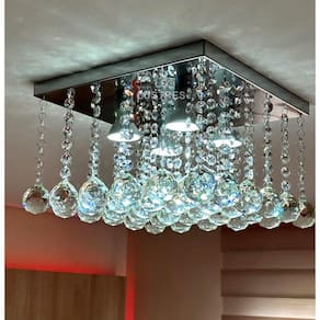 * Base de inox espelhado 30x30cm com acabamento a laser. * Castanhas de cristal de 14mm. * Modelo para 04 Lâmpadas GU10 (Lâmpadas não inclusas ) * Direto da fábrica para seu ambiente