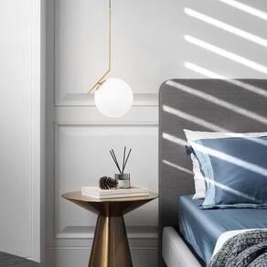 O globo é de vidro na cor branco leitoso fosco com 15cm de diâmetro e uma abertura inferior de 6,5cm para troca da lâmpada e encaixe na estrutura metálica. O corpo da luminária com o globo tem 45cm de altura, 15cm de profundidade e 20cm de largura. Capacidade para 1 lâmpada E27 até 60 Watts de potência. A fiação é na cor preta e possui 155cm, regulável, o que permite o ajuste de altura na medida perfeita em relação ao teto. É compatível com tensão Bivolt, para ligação na corrente elétrica 110v / 220v. Já acompanha base de sobrepor em metal com 10cm de diâmetro x 2cm de altura, no mesmo tom de cor da luminária. Por fim, para maior praticidade e conveniência na instalação, segue com um kit fixação com travessa, parafusos, buchas e arruelas.