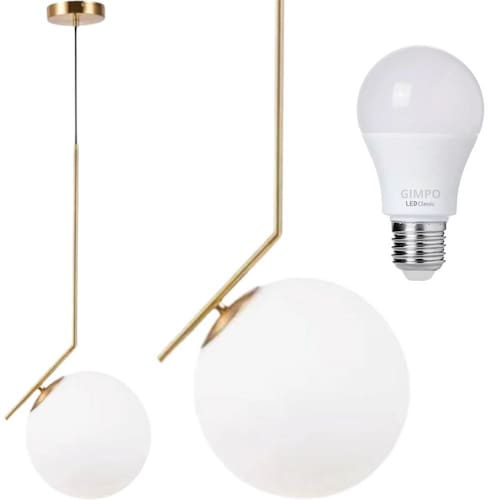 Luminária Pendente Jabuticaba 45cm Angular Globo Vidro 15cm Teto Gimpo KJDD-E-059-12 + 1 Lâmpada LED 12W