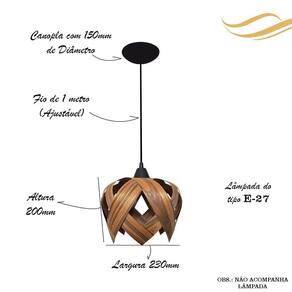 Especificações técnicas: Dimensões do produto cxlxa: 23 x 23 x 20cm; Peso do produto: 190g Cabo: PP preto, 1 metro ajustável ; Soquete: tipo e-27; Lâmpada: aceita diversos tipos eletrônica ou led - obs.: não acompanha lâmpada; Voltagem: 110v / 220v bivolt ;