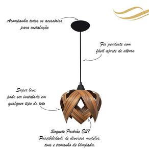 Pra você que está decorando ou buscando melhorar os seus ambientes, saiba que uma boa iluminação pode transformar o seu espaço, trazendo mais requinte, elegância, personalidade e conforto. Nosso produto é confeccionado com lâminas de madeira natural, ecológica e montado por artesão.