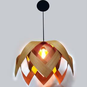 Luminária Pendente Madeira Sala Cozinha Flor De Lótus Cor Freijó