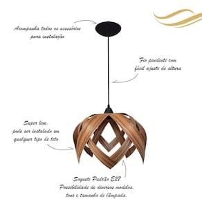 Pra você que está decorando ou buscando melhorar os seus ambientes, saiba que uma boa iluminação pode transformar o seu espaço, trazendo mais requinte, elegância, personalidade e conforto. Nosso produto é confeccionado com lâminas de madeira natural, ecológica e montado por artesão.