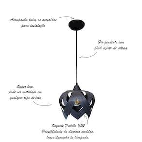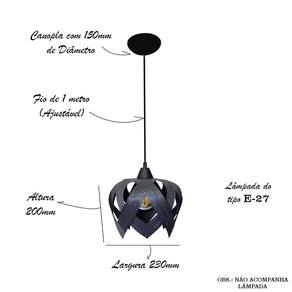 Especificações técnicas: Dimensões do produto cxlxa: 23 x 23 x 20cm; Peso do produto: 190g Cabo: pp, cor preto, 1 metro (ajustável); Soquete: tipo e-27; Lâmpada: aceita diversos tipos eletrônica ou led - obs.: não acompanha lâmpada; Voltagem: 110v / 220v (bivolt);