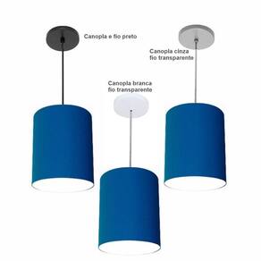 Luminária Pendente Md-4102 Cúpula Em Tecido Azul-marinho Cor Da Canopla Branca E Fio Transparente