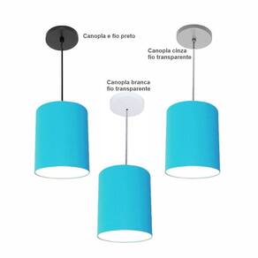 Luminária Pendente Md-4102 Cúpula Em Tecido Azul-turquesa Cor Da Canopla Canola Preta E Fio Preto