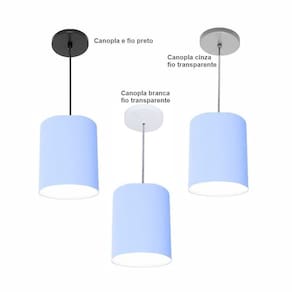 Luminária Pendente Vivare Free Lux Md-4102 Cúpula Em Tecido Cor Azul-bebê Cor Da Canopla Canopla Cinza E Fio Transparente