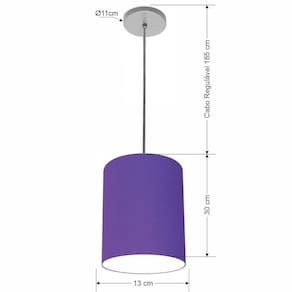 Luminária Pendente Vivare Free Lux Md-4102 Cúpula Em Tecido Cor Roxo Cor Da Canopla Canopla Cinza E Fio Transparente