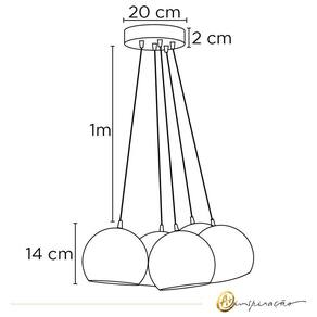 Lustre Pendente Bola Jabuticaba 5Xg9 Meio Globos Preto