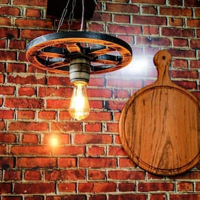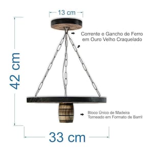Luminária pendente de madeira maciça Modelo roda de carroça - 33cm de diâmetro