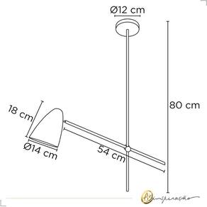 Cor: Preto com Dourado Lixado Soquete: 1xE27 não inclusa Material: Alumínio Dimensões: 80x54cm - Qual cor de Luz você tem Resposta: Essa peça utiliza uma lâmpada E27, adquirida separadamente. - Qual o prazo de deste produto Resposta: Este produto possui de 3 meses. Marca: Não Informado