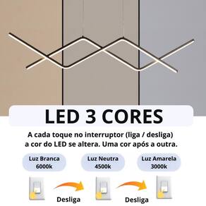 Luminária Pendente Teto 110cm x 92cm Linear Dupla Wave Raio Ondas Minimalista Gimpo KJDD-L-140 COR: PRETO 1 x Luminária 110cm x 92cm Linear Dupla Minimalista Gimpo KJDD-L-140. LED 3 Cores: Branco quente 3000k, branco neutro 4500k e branco frio 6000k. Multitemperatura 3x1. Potência 36 Watts. Bivolt 110v/220v . Transforme seu espaço com elegância com a luminária suspensa de teto Wave Ondas Raio Gimpo KJDD-L-140. É a escolha perfeita para iluminar e modernizar qualquer ambiente com um toque minimalista. Combina materiais de alta qualidade, como o alumínio e silicone, para garantir uma iluminação suave e aconchegante. Uma peça sofisticada, delicada, que une beleza e funcionalidade. Versátil para uma variedade de ambientes. Já vem com LED multitemperatura de 36 Watts instalado, pronto para uso, com 3 intensidades de cores: branco quente 3000K , branco neutro 4500K e branco frio 6000K . A seleção das luzes é feita através do . Ao acender e apagar a luz liga / desliga é possível alternar entre os três tons de luz. Isto faz com que a cor do LED seja alterada, uma cor após a outra. Deste modo, controla-se a luminosidade e também a potência de Watts que é enviada para o LED, além da atmosfera certa, a qualquer momento, para refletir as mais diferentes emoções. É compatível com tensão Bivolt, o que permite ligar em 110v e em 220v. LED e driver já seguem instalados, com rabicho pronto para adaptação na corrente elétrica. Sustentável, econômica, de alta eficiência energética. Ainda, para maior comodidade e praticidade, acompanha kit fixação com travessa, parafusos, buchas e arruelas. Instalação descomplicada, fácil e segura. É uma luminária completa, ideal então, para iluminar diversos locais, tais como: salas de estar, halls, corredores, banheiros, lavabos, cozinha, penteadeiras, quartos, salas de jantar, bares, cafés, restaurantes, clínicas, salões, estúdios, home offices, etc. Pode ser utilizado individualmente ou em composições com outras luminárias. Um conceito contemporâneo para agregar estilo, requinte e sofisticação Luminárias Gimpo. Elementos de beleza que transformam decorações. Especificações: 1 x Luminária Linear Dupla Minimalista Wave Gimpo KJDD-L-140. Medidas luminária: 110cm altura x 92cm largura x 5cm profundidade. Base canopla : 60cm largura x 5cm comprimento e 2,5cm profundidade. Base de sobrepor. Cor da base: mesmo tom de cor da luminária. Fita de LED já instalada. Potência: 36 Watts. LED Driver 3 Cores Multitemperatura. Com proteção contra curto-circuito. Instalação: Corrente elétrica. Fiação rabicho já instalado no driver. Material: Alumínio, Silicone. Voltagem: 110v / 220v Bivolt . Acompanha kit parafusos, buchas, arruelas e travessa. Necessita montagem: fixação no teto e ligação elétrica. Medidas da caixa: 95cm x 29cm x 8,5cm. Peso: 1,5kg. Modelo: KJDD-L-140. Marca: Gimpo. EAN: 7898680305057. Sempre verifique a cor do produto ANTES de concluir a compra. Não fazemos alterações posteriores em pedidos. Imagens do anúncio são ilustrativas.