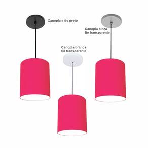 Luminária Pendente Vivare Free Lux Md-4102 Cúpula em Tecido - Cor: Pink | Cor da Canopla: Canopla branca e fio cristal