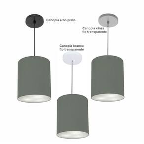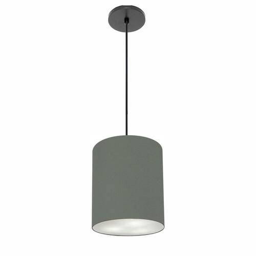 Luminária Pendente Vivare Free Lux Md-4102 Cúpula em Tecido - Cor: Cinza-escuro | Cor da Canopla: Canopla preta e fio preto
