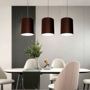 Luminária Pendente Vivare Free Lux Md-4104 Cúpula Em Tecido Cor Café Cor Da Canopla Canopla Preta E Fio Preto