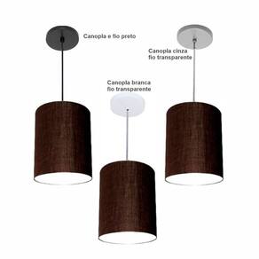 Luminária Pendente Vivare Free Lux Md-4104 Cúpula Em Tecido Café Da Canopla Canopla Preta E Fio Preto