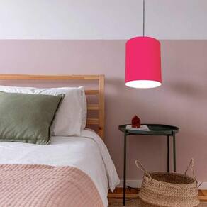 Luminária Pendente Vivare Free Lux Md-4104 Cúpula Em Tecido Cor Pink Cor Da Canopla Canopla Preta E Fio Preto