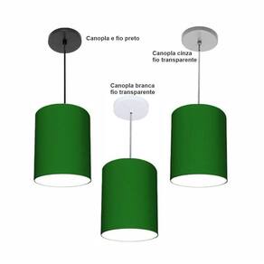 Luminária Pendente Vivare Free Lux Md-4104 Cúpula Em Tecido Cor Verde-folha Cor Da Canopla Canopla Cinza E Fio Cristal