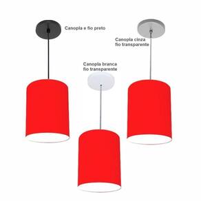 Luminária Pendente Vivare Free Lux Md-4104 Cúpula Em Tecido Cor Vermelho Cor Da Canopla Canopla Branca E Fio Cristal