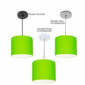 Luminária Pendente Vivare Free Lux Md-4105 Cúpula Em Tecido Cor Verde-limão Cor Da Canopla Canopla Preta E Fio Preto