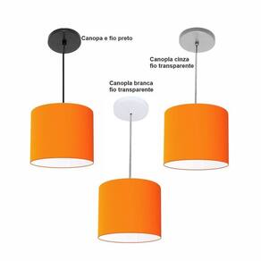 Luminária Pendente Vivare Free Lux Md-4106 Cúpula Em Tecido Cor Laranja Cor Da Canopla Canopla Preta E Fio Preto