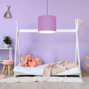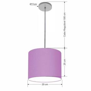 Luminária Pendente Vivare Free Lux Md-4106 Cúpula Em Tecido Lilás Da Canopla Canopla Cinza E Fio Cristal