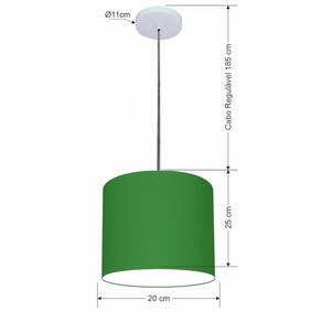 Luminária Pendente Vivare Free Lux Md-4106 Cúpula em Tecido - Cor: Verde-folha | Cor da Canopla: Canopla branca e fio cristal