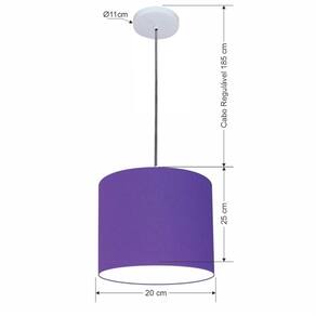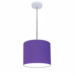 Luminária Pendente Vivare Free Lux Md-4106 Cúpula em Tecido - Cor: Roxo | Cor da Canopla: Canopla branca e fio cristal