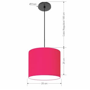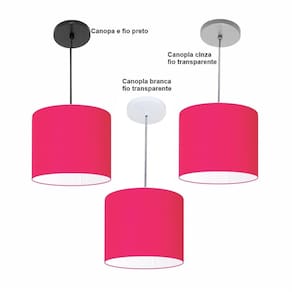 Luminária Pendente Vivare Free Lux Md-4106 Cúpula em Tecido - Cor: Pink | Cor da Canopla: Canopla preta e fio preto