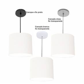 Luminária Pendente Vivare Free Lux Md-4106 Cúpula em Tecido - Cor: Branca | Cor da Canopla: Canopla branca e fio cristal