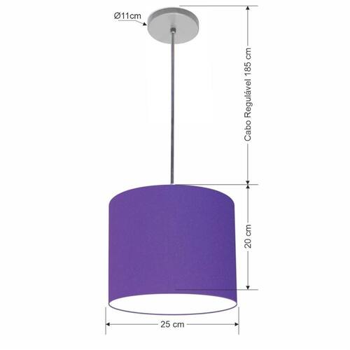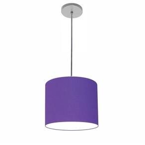 Luminária Pendente Vivare Free Lux Md-4107 Cúpula em Tecido - Cor: Roxo | Cor da Canopla: Canopla cinza e fio cristal