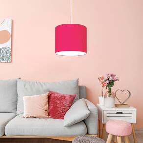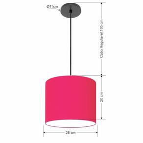 Luminária Pendente Vivare Free Lux Md-4107 Cúpula em Tecido - Cor: Pink | Cor da Canopla: Canopla preta e fio preto